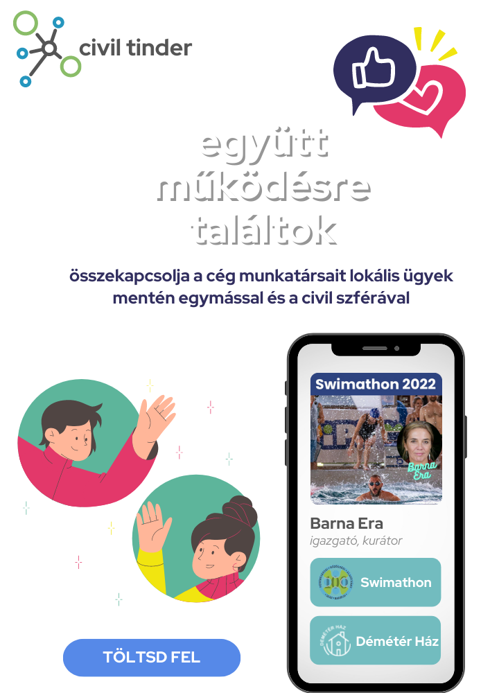 A Civil Tinder modell-projekt egy társkereső platform és alkalmazás, amely könnyen és nagymértékben tudja támogatni a helyi közösségek lakói, civil kezdeményezései és üzleti szereplői egymásra találását, akik együttműködve megsokszorozhatják